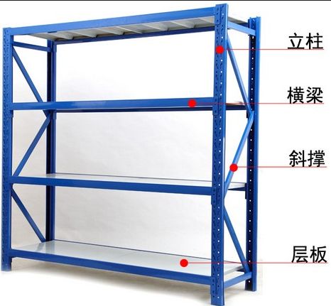 主要由柱片、鋼層板組成。立柱采用輥壓成型工藝,配合斜拉桿、水平拉桿連接而組成立柱片。根據需要搭配側梁式層板或橫梁式層板使用,層板可以以每50毫米為節距上下任意調整層高,貨架為插接組合式結構,穩定性高,安裝拆卸方便。單元貨架每層載重量200kg-800kg之間,總載重一般不大于5000kg。單元貨架跨度通常不大于2.6m,深度不大于1.2m,高度一般在5m以內。適用于承載中小件貨物。廣泛應用于商場、超市、企業倉庫及事業單位等各種行業。